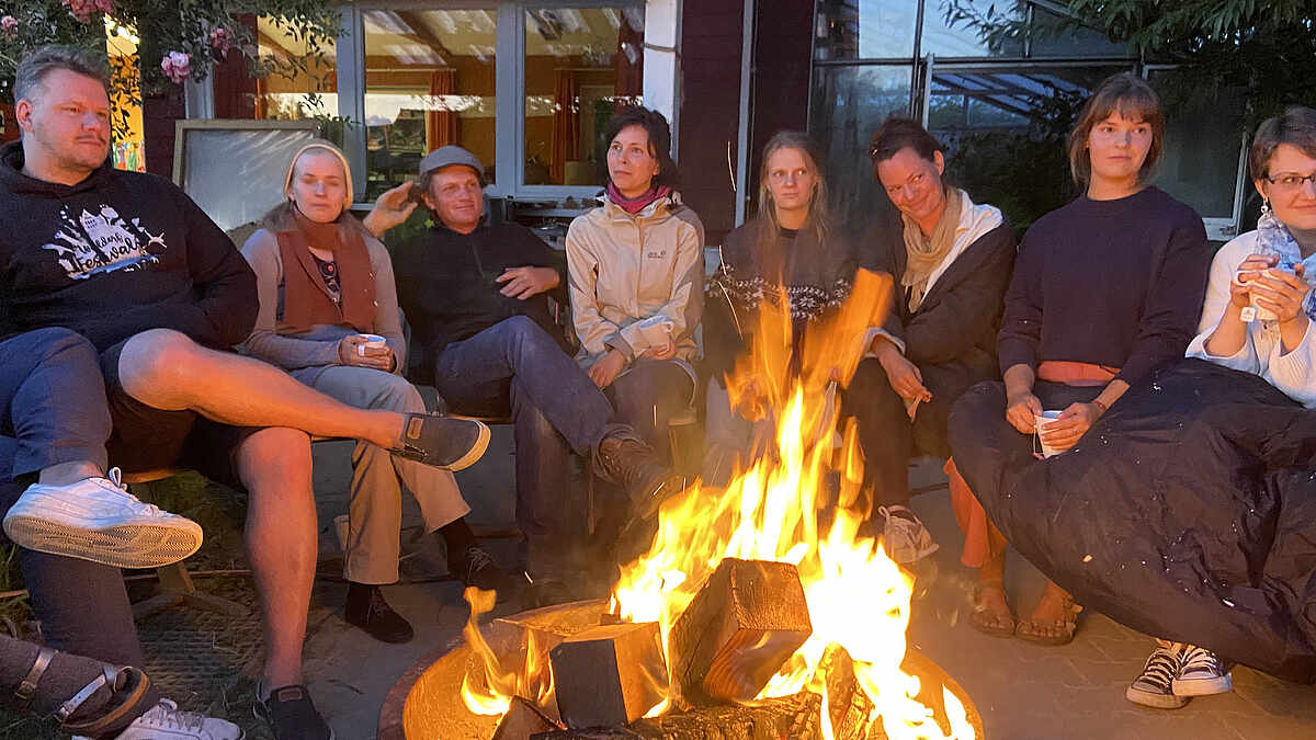 Nach einer kurzen Pause wechselten wir den Raum, machten eine Übung zum Lauschen der Stille mit Almuth und versuchten wahrzunehmen, was zwischen uns lebt. Die Frage wie eine Jugendsektion im Deutschland konkret werden kann, stand nun sehr stark im Raum. Wir hörten konkrete Projektvorschläge: Eine Reise durch Deutschland, um die viele Initiativen und jungen Menschen, die sich für die Anthroposophie begeistern und einsetzen, kennenzulernen und damit eine Art „Landkarte“ der vielen Projekte Deutschlands zu schaffen, klang an. Eine große Tagung für 2024 mit dem groben Thema „Wie entwickeln wir die Anthroposophie für ihr nächstes Jahrhundert weiter? Was ist die Aufgabe des 2. Jahrhunderts?“ war eine andere Idee. Die Gestaltung eines monatlichen „Online-Raumes“, in dem ein deutschlandweiter Austausch zu Projekten stattfinden könnte; Sprinter-Busse mit einer mobilen Jugendsektion; ein Forschungsprojekt zu Motiven der Jugend; ein „Haus der Fragen“ und einiges mehr wurde bewegt. Eine Geburtsstimmung war zu spüren. Endlich fing die Sache an, greifbar zu werden. Müde, aber erfüllt von den vielen Ereignissen, die wir erlebt hatten, ließen wir den Tag mit Essen, einer Führung durch das Gelände von Schloss Hamborn und einer vertrauten Highlight-Runde am Feuer ausklingen.