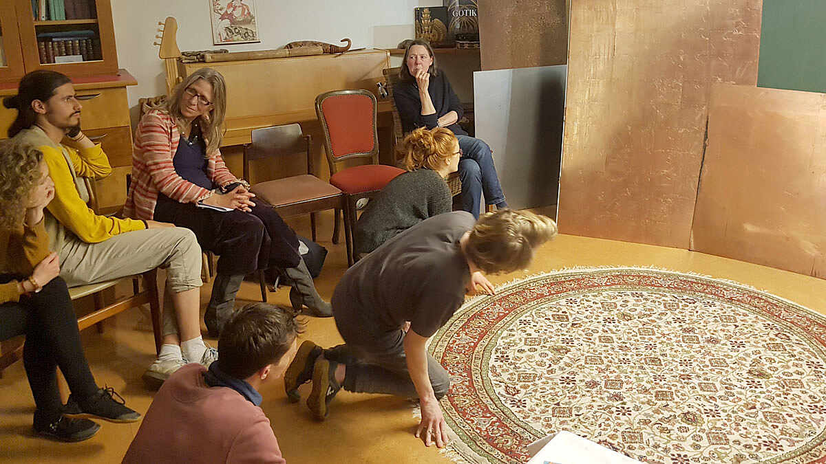 Praktisch verlaufen die Veranstaltungen so, dass schon nachmittags der „Ort der Begegnung“ ein offenes Atelier bietet. Am Abend wird dann zum Salon geladen, eröffnet mit einem pakistanischen Essen. Im Anschluss sind Gäste eingeladen, die z.B. Wahrnehmungsübungen an Kunstwerken anleiten, so beim ersten Treffen der Kunstwissenschaftler David Hornemann von Lear. Beim zweiten und dritten Treffen waren der Künstler Alexander Schaumann mit einer spannenden Wahrnehmungsübung mit Steinen und die Goldschmiedin und passionierte Alchemistin Anna Deimann zum Thema Metalle zu Gast.