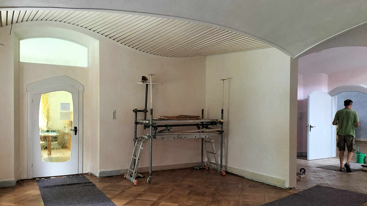 Neben den Handwerkern waren immer wieder Freiwillige an der Arbeit: putzen, putzen und streichen, streichen. Als im Juli und im August für jeweils eine Woche eine Gruppe Freiwilliger die Räume lasierte, merkten wir freudig: es nähert sich dem Wiedereinzug! Im September konnten sich die vier Zweige und die Gruppen neu im Rudolf Steiner Haus beheimaten.