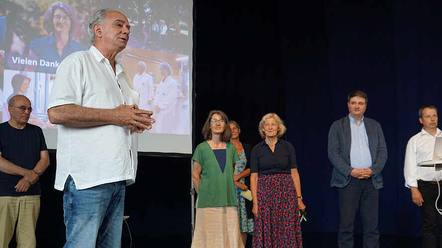 Michael Schmock und andere Vorstandsmitglieder mit Gästen bei der Verabschiedung von Angelika Sandtmann | Foto: S.Knust Mit der Vergangenheit Frieden schließen, eine Bestandsaufnahme der Gegenwart versuchen und einen Blick in die Zukunft wagen, das waren die Traumszenarien der Vorbereitungsgruppe für die diesjährige Mitgliederversammlung und Tagung, die im Zeichen der an Weihnachten 100 Jahre bestehenden Anthroposophischen Gesellschaft stehen sollten. Nun, Traumszenarien haben auch mit Träumen zu tun, die manchmal Wirklichkeit werden oder auch Traum bleiben müssen.