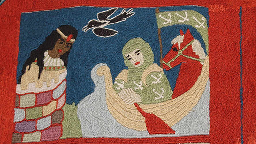 30 Jahre Parzival_Teppich Foto: Micaela Sauber Vor 30 Jahren weihte mich Prof. Christel Oehlmann, die in Hildesheim Sozialpädagogik lehrte, in einer einwöchigen Klausur bei sich zu Hause methodisch und inhaltlich in Wolfram von Eschenbachs Parzival ein. Christel Oehlmann hatte einen Teppich mit 16 Bildern entwickelt, um daran ihren Kindern die Geschichten der 16 Kapitel Wolframs zu erzählen. Die Inspiration hierzu gab ihr die tausendjährige bronzene Bernward-Tür am Hildesheimer Dom, an der in U-Form die Menschheitsgeschichte erzählt wird. Acht Bilder zeigen den Niedergang, acht Bilder die Heilsgeschichte von der Verkündigung des Engels an Maria bis zur Begegnung zwischen Maria Magdalena und dem Auferstandenen. Diese Struktur der bildnerischen Umsetzung für Wolframs Parzival zu übernehmen bietet sich an.