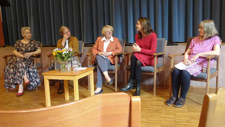 Im Podiumsgespräch und an der Aussprache zum Abschluss nahmen neben den drei Rednerinnen auch Barbara Messmer (Frankfurt, Frauenrat der Anthroposophischen Gesellschaft) und Carlotta Brissa (Uni Witten-Herdecke) teil. Es wurden die Themen Aktualität der Frauenfrage, die zweite Frauenbewegung der 1970er-Jahre, die nicht binäre Geschlechtlichkeit sowie ein konstruktiver Umgang mit der Polarität von Frau und Mann angesprochen.