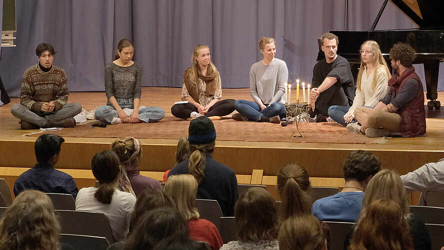 Podiumsgespräch auf der bildungsART 22 | Foto: M.Bindelli Wie können wir Schritte in die Zukunft machen, wenn alles in der Welt nicht mehr zu tragen scheint - die beruflichen Traditionen, der Familienzusammenhalt oder eine als sinnentleert erscheinende Bildungslandschaft? Vor dieser Frage standen viele junge Menschen vor 100 Jahren und haben von Steiner in mehreren Vorträgen den sogenannten „Jugendkurs“ (GA 217) an die Hand bekommen. Erstaunlich ähnlich ist auch das heutige Lebensgefühl vieler junger Menschen, 100 Jahre später! Auf der bildungsART 22, einer intensiven dreitätigen Tagung vom 12. bis 14. Oktober 2022 in Stuttgart folgten ca. 250 Studierende und Auszubildende der Stuttgarter Bildungspartner (Eurythmeum, Freie Hochschule Stuttgart – Seminar für Waldorfpädagogik, Jugendseminar, Waldorferzieherseminar und Priesterseminar) diesen thematischen Spuren.