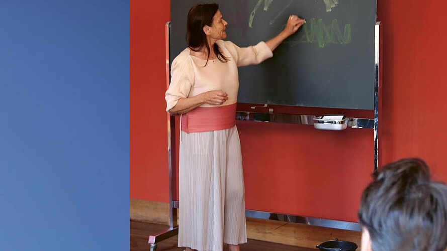 Titelbild Birgit Ebel bei der Mantrenwerkstatt 2024. Foto: Enno Schmidt