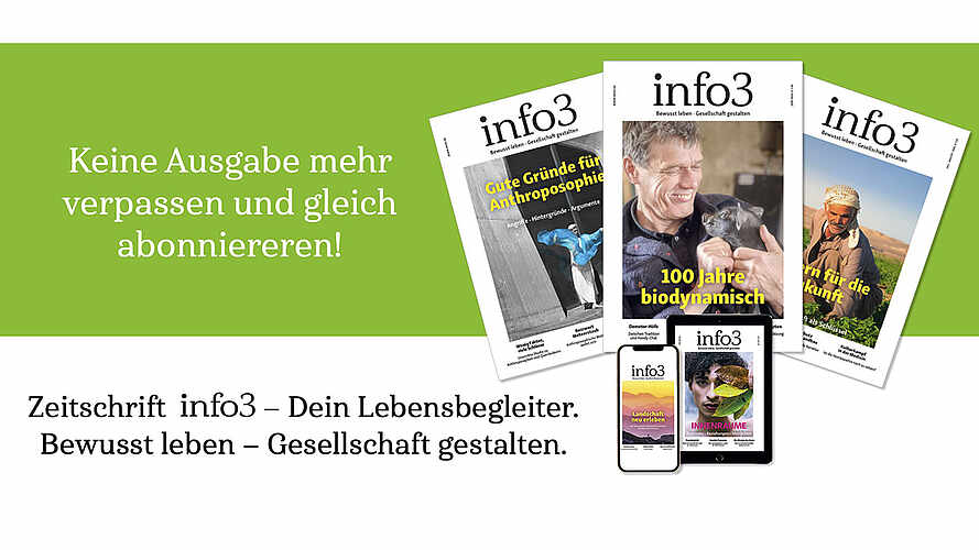AKDe: Wir hatten zum Beispiel in diesem Jahr Themenschwerpunkte zur Homöopathie, über Wahrheit, zum Thema Reisen oder zur Kunst als Kraftquelle. Manches liegt in der Luft oder ist einfach dran, etwa Homöopathie oder 100 Jahre biologisch-dynamische Landwirtschaft, manches „setzen“ wir. Zum Beispiel das Dezember-Heft zum Thema „Übersinnliche Erfahrung“. Das war ein Impuls von einem der Redaktionsmitglieder und es kam uns nicht unbedingt von überall entgegen, dass wir dazu auch mal was machen müssten. Das war beim Thema der „verletzlichen Demokratie“ im November 2024 ganz anders. Da hatten wir wirklich das Gefühl, wir greifen etwas auf, was sich gerade im Zeitgeschehen tut. Für all das ist Platz bei info3, für Aktuelles und für individuelle Initiative – wir haben da einen großen Freiraum.