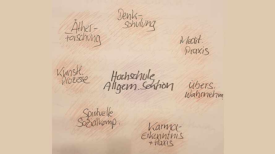 Die Zusammenkunft wurde, nach einer meditativ-musikalischen Einstimmung durch Matthias Bölts, mit einem Beitrag von Michael Schmock eröffnet. Darin beschreib er, wie seine eigenen Erlebnisse mit der Hochschule ihn zu einem Zukunftsbild einer „Erweiterten Hochschule“ geführt hatten – zu einer Hochschule, die sich der Vielfalt verschiedenster übender Ansätze und Herangehensweisen öffnet, zu einer Hochschule, in der neben den in der Vergangenheit bekannten Formen viele weitere Formen lebendig gepflegt wurden: von meditativen oder übenden Ansätzen, dialogischen Formen bis hin zu unterschiedlichsten künstlerischen Arbeitsweisen. In einem zweiten Schritt könnte diese sich „Erweiterte Hochschule“ ausdehnen auf Gruppen, die sich übend und forschend mit dem Eintritt in geistige Zusammenhänge des Menschen und der Welt auseinandersetzen, mit dem Feld des Karma, der Menschenkunde, der Engel-Hierarchien und des sozialen Lebens. Gruppen, die bisher jenseits der Hochschule mit Ernst und Kontinuität für ein geistiges Leben tätig waren, könnten so mit ihren Themen und Arbeitsweisen impulsgebend für ein Teil der Hochschule sein.