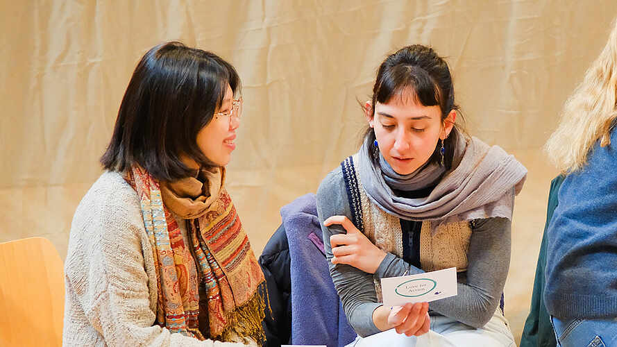 Da es laut der Beschreibung darum ging, Gedanken der „Philosophie der Freiheit“ praktisch und künstlerisch zu erfahren, war ich besonders neugierig auf diese Tagung. Nach einem gemeinsamen Singen ging es gleich los mit einer praktischen Übung: ein Bild malen zu einem Satz aus der „Philosophie der Freiheit“. So viele verschiedene, farbige Bilder entstanden da von allen Teilnehmenden, dass es mich zum Staunen brachte, was ein Satz in den Menschen bewirken kann! Am späteren Abend konnte man im „Light Play“, einem Stück der Jugendsektion, einer Komposition aus Bewegung, Sprache, Eurythmie und projiziertem Lichtspiel von Farben, eintauchen in eine Art Traumwelt und immer wieder den Bezug zu „Freiheit“ erahnen und spüren.