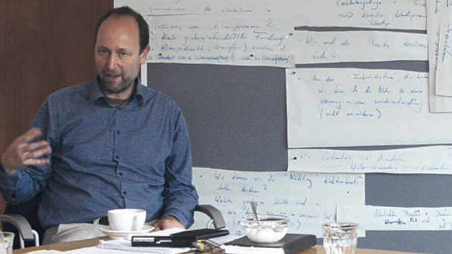 Stefan Ruf bei einem Kolloquium | Foto: M.Elbert Welche Beiträge können aus der Anthroposophie zu den vor uns liegenden Transformationsherausforderungen geleistet werden? Es wird eine Vielfalt von Ansätzen für Neugestaltung auf allen Ebenen gebraucht. Technische Lösungen und Geoengineering alleine werden die Probleme nicht beheben. Vielmehr stellt sich die Frage: Ergreifen wir Initiative oder werden wir von Resignation ergriffen? Der Beitrag aus der Anthroposophie, als einem letzten Nebenstrom des dominanten naturwissenschaftlichen Hauptstroms, ist mit ihrem geisteswissenschaftlichen Blick auf den tiefen Sinnzusammenhang von Mensch und Welt eine unerlässliche Zukunftskraft in diesem Grenzgebiet. Ohne die Veränderung der inneren Haltung und ohne neue Beziehungsfähigkeit zur Welt kann äußerer Wandel kaum gelingen.