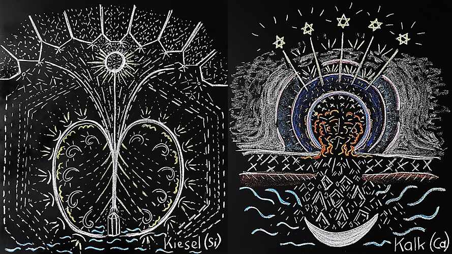 Meditativ erfasste Bilder von Kalk und Kiesel von Markus Buchmann. Foto: M.Buchmann Sebastian Knust: Bildekräfteforschung ist eine besondere Disziplin, die aus dem „Stamm“ der anthroposophischen Geistesforschung hervorgegangen ist. Kannst Du kurz wesentliche Aspekte dieses Ansatzes skizzieren?