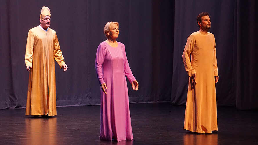 Szenen aus den "Mysteriendramen" bei der "Karma-Tagung" | Foto: S.Knust Im Zusammenhang mit der diesjährigen Mitgliederversammlung stand unsere Jahrestagung, welche „Karma-Erkenntnis – Karma-Praxis“ zum Thema hatte. Ich muss gestehen, dass ich etwas zurückhaltend auf diese Tagung zuging. Das Thema „Reinkarnation und Karma“ gehört zu meinem Leben dazu; es war mir nie fremd. Das Märchen „Frau Holle“, welches dieses Thema zum Inhalt hat, gehörte als Kind zu meinen Lieblingsmärchen. Als Lehrerin versuchte ich diese Dimension in meinen Unterricht miteinzubeziehen, als Heilpraktikerin versuche ich es ebenso. Aber darüber mit anderen Menschen zu sprechen, fühlte sich für mich unbehaglich an. Ich witterte die Gefahr des Spekulativen. Kurz: ich war skeptisch.