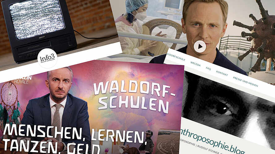 Collage von Screenshots verschiedener Medienbeiträge | Bild: S.Knust In den vergangenen Tagen erschien wieder eine Reihe kritischer Medien-Beiträge. Allen voran hat der bekannte Fernseh-Satiriker Jan Böhmermann in seinem Format „ZDF Magazin Royale“ die Anthroposophie und die Waldorfschulen am 18. November kritisiert. Die Zeitschrift Info3 durchleutete Netzwerke der Anthro-Kritiker und hat dabei spannende Erkenntnisse zutage gefördert. In der kleinen Presseschau wird eine Auswahl der in den letzten Tagen erschienen Veröffentlichung präsentiert.