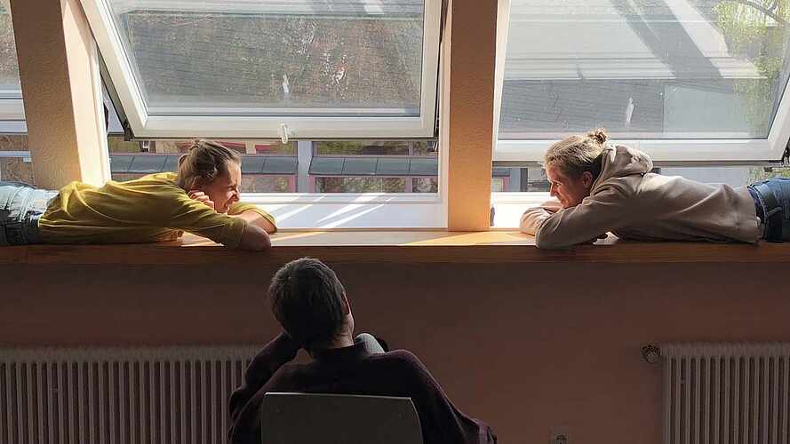 Pausengespräche am Fenster | Foto: S.Knust Räume schaffen für ein bewusstes, ganzheitliches Leben ist für mich, gerade in der heutigen Zeit, wichtig. Das richtige Handwerkszeug zu entwickeln, um diese Räume füllen, gestalten und entstehen lassen zu können, ist meiner Meinung nach unerlässlich! Der Schulungsweg, der in den Klassenstunden von Rudolf Steiner aufgezeigt wird, ist eine Möglichkeit, sich solch ein Handwerkszeug zu erarbeiten. Durch die Begegnung mit anderen Menschen entsteht dann die Möglichkeit, nicht nur im eigenen Universum zu bleiben, sondern zu fragen, zu antworten, zuzuhören, zuzustimmen, zu diskutieren, zu kommunizieren, zu beobachten, zu konfrontieren, eigene Denkanstöße, Impulse, Fragen, Ideen, Gedanken, Handlungsansätze zu bekommen, um dies alles weiter in den persönlichen Alltag zu tragen, zu verwandeln und damit bewusster den eigenen nächsten Schritt zu gestalten.