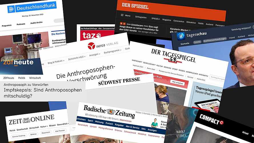Mediensturm | Collage: S.Knust Die Corona-Pandemie ist wieder massiv zurück und in Deutschland wird fieberhaft nach den Verantwortlichen für die niedrige Impfquote gesucht. Da kommen „die Anthroposophen“ so manchen offenbar wie gerufen: Sie sind gesamtgesellschaftlich gesehen eine marginale Randerscheinung, jedoch – so heißt es in einigen Medien und in einer jüngst erschienenen Studie - mit „starker Autoritätsskepsis“, einem „Hang zur Esoterik“ und ideelle Anstifter der Impfskepsis. Diese und ähnliche simple Schlussfolgerungen auf die komplexe Frage nach der deutschen Impfquote hat zu einer Reihe von einseitig-kritischen und zum Glück auch differenzierten Beiträgen in der Medienwelt geführt. Hier eine Auswahl: