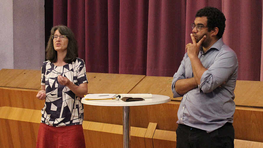 Die Aufgabe sei nun, ein Gleichgewicht zu erhalten zwischen den beiden Feldern, wobei in dieser Mitte der Kommunikation und den damit verbundenen Medien, den Mitteilungen und dem Newsletter, eine besondere Aufgabe zukäme. In diesem Zusammenhang berichtete Sebastian Knust anschaulich von seiner Tätigkeit für den Newsletter und den Umgang mit Rassismusvorwürfen in der Öffentlichkeitsarbeit.
